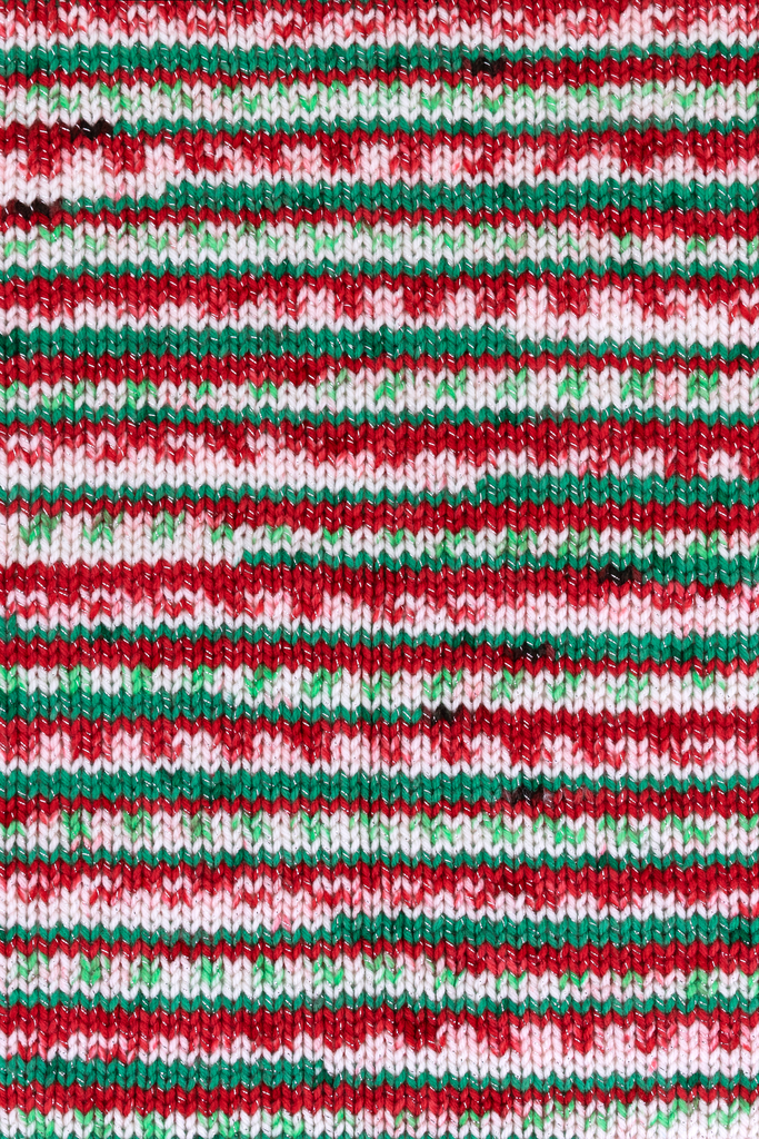 Die gründl "Merry Christmas … to you!" Weihnachtswolle (333 g) bringt festliche Stimmung auf die Nadeln. Die Wolle kombiniert zwei Varianten in den Farben weiß, grün und rot – einmal aus 100 % Polyacryl sowie einmal mit elegantem Silberfaden aus 98,5 % Polyacryl und 1,5 % metallisiertem Polyester. Diese Farben passen perfekt zu traditionellen Weihnachtsdekorationen und -projekten. Auf der Innenseite der Banderole findest du außerdem eine Anleitung, mit der du aus nur einem Knäuel einen stylischen Weihnachtsschal zaubern kannst.